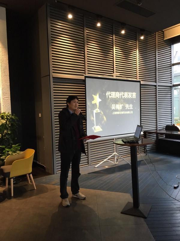 頒獎(jiǎng)典禮上榮獲“鉆石營(yíng)銷獎(jiǎng)”的上海博侯生物的吳偉擴(kuò)總經(jīng)理作為經(jīng)銷商代表發(fā)言, 吳總對(duì)海貍給予高度的肯定,并表示2017年一定會(huì)在16年的基礎(chǔ)上再接再厲,繼續(xù)做好廠商和終端用戶之間的橋梁。