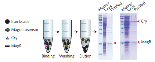 圖1. 利用海貍磁珠(BEAVER,70301)捕獲Cry和MagR實(shí)驗(yàn)過程及效果。