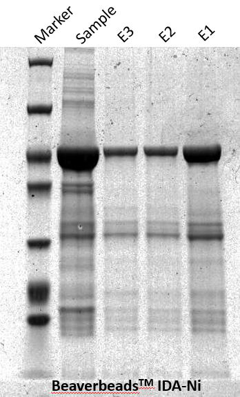 圖:BeaverBeads™ IDA-Nickel可純化原核細(xì)胞胞內(nèi)表達(dá)可溶性蛋白。純度可達(dá)85%。