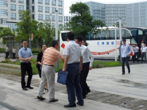 圖1. 市人力資源和社會(huì)保障局、園區(qū)科技發(fā)展局、組織人事局、科技招商中心、中小企業(yè)服務(wù)中心有關(guān)負(fù)責(zé)人陪同美國(guó)麻省理工學(xué)院代表團(tuán)一行到達(dá)海貍