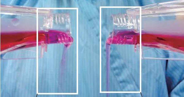 普通瓶口:培養(yǎng)液倒出終止,外瓶口掛壁 Smart瓶口:培養(yǎng)液倒出終止,液滴自動縮回瓶內,