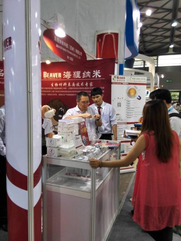 展會期間,海貍納米CEO任輝博士親自介紹并演示了新產品。NHS磁珠簡便、快速、高效的使用性能以及SmartFlask細胞培養(yǎng)瓶零掛滴,防污染的特性引起了參觀者極大的興趣。