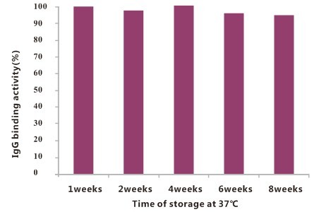BeaverBeads? Protein A Matrix磁珠穩(wěn)定性測試。將磁珠置于37℃環(huán)境下連續(xù)測試8周,其抗體結(jié)合效率無明顯衰減,表明了該磁珠具有較好的穩(wěn)定性。