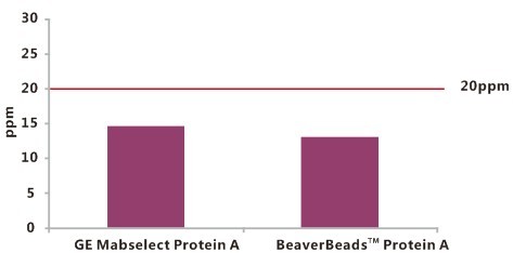 BeaverBeads? 磁珠的抗體純化產(chǎn)品中Protein A 殘留量均低于美國FDA的標準(20ppm)。與已獲FDA認證的國外知名產(chǎn)品無明顯差別。
